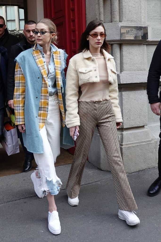 Джиджи Хадид и ее сестра Белла во время миланской Недели моды, 21 февраля 2018[/caption]