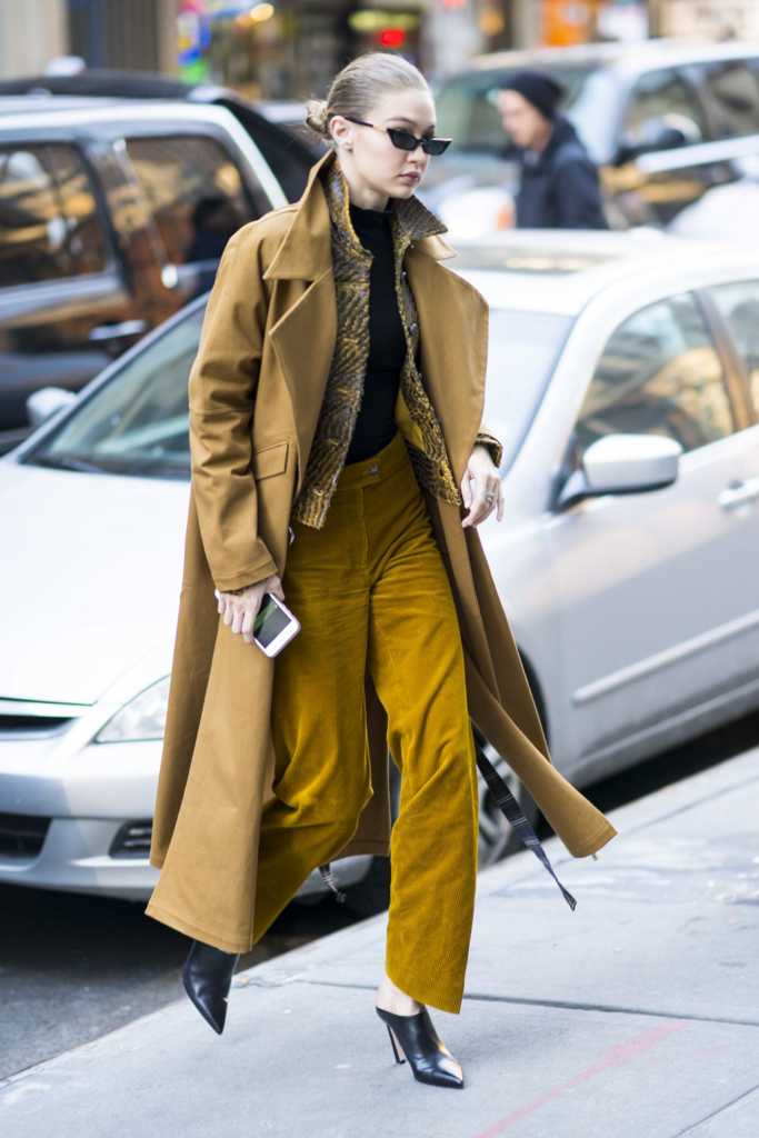 Джиджи в черно-желтом ансамбле, Нью-Йорк, 17 января 2018[/caption]