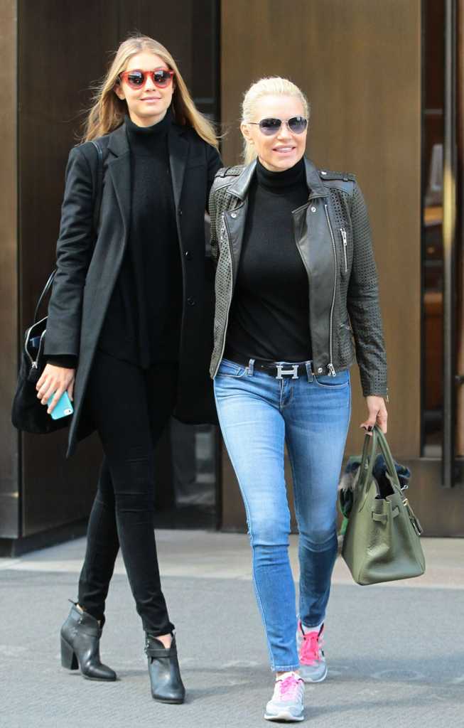 Джиджи и ее мама Иоланда Хадид(Фостер) выходят из отеля, Нью-Йорк, 4 апреля 2018[/caption]