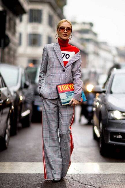 Брючный костюм – визитная карточка повседневного городского стиля – желанный гость улиц модных столиц мира: если в Нью-Йорке преобладают костюмы в клетку, то Милан радует яркими цветами, ну а в Париже балом правит сама элегантность – плавные линии жакета, женственный силуэт.